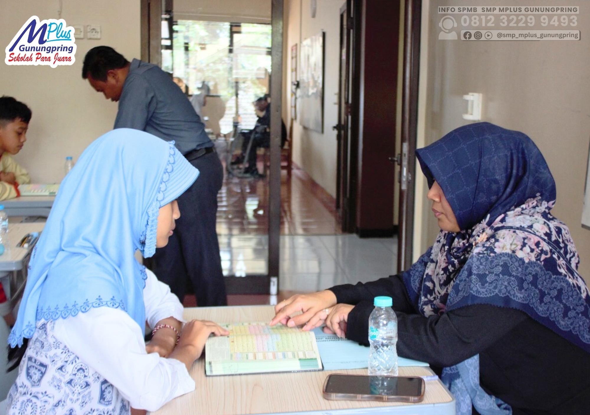 Sebelum tes dimulai, seluruh peserta mengikuti registrasi dan pengarahan teknis dari panitia. Orang tua peserta juga mendapatkan sesi pemaparan dan tanya jawab bersama pihak sekolah di Aula Lantai 3, yang menjadi wadah komunikasi dan informasi mengenai sistem pembelajaran serta program unggulan MPlus.