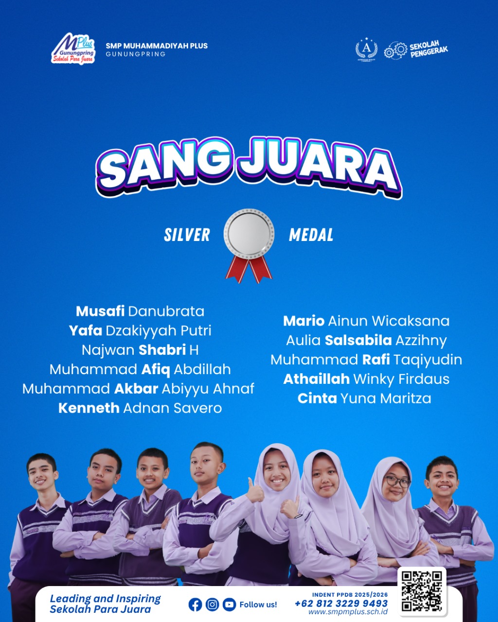 Sebanyak 11 siswa berhasil meraih medali perak, menegaskan dominasi M Plus dalam kompetisi ini. Mereka adalah: