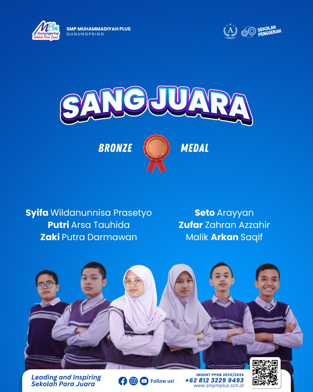 Tidak kalah membanggakan, 6 siswa lainnya berhasil meraih medali perunggu, membuktikan bahwa prestasi bukan hanya milik segelintir orang, tapi bisa diraih oleh siapa saja yang tekun dan gigih: