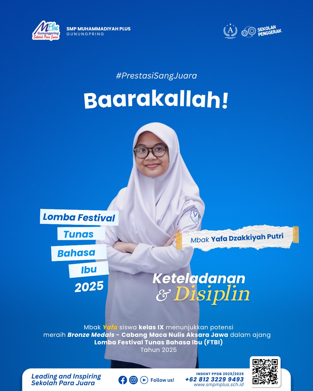SMP Muhammadiyah Plus Gunungpring Raih Prestasi Gemilang di Kompetisi KSNR 7 2025, 25 Siswa Lolos ke Babak Semifinal! admin Aneka Kegiatan MPlus, Prestasi Terbaru MPlus GUNUNGPRING – Kabar membanggakan datang dari SMP Muhammadiyah Plus Gunungpring. Sebanyak 25 siswa berhasil lolos ke babak semifinal Kompetisi Sains Nalaria Realistik (KSNR) 7 se-Indonesia tahun 2025. Prestasi ini... Continue Reading